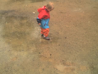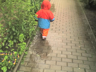 Sonntagsspaziergang Arnold Krille 2010-05-30 22:05 Gummistiefel, Matschhose und Regenjacke sind toll! Während Papa gerne mal unter einem Vordach wartet, kann Sohnemann in jede Pfütze rein treten!
